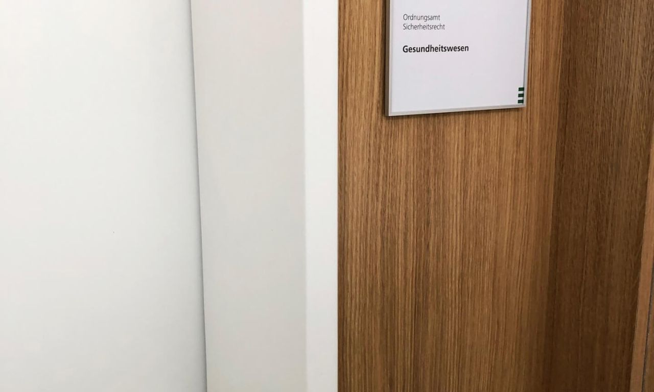 Das Foyer wurde mit Bodenindikatoren aus Edelstahl barrierefrei ausgestattet. Dieses Leitsystem aus insg. 10.000 Noppen und 90 lfm Leitstreifen wurde auf den Naturstein verklebt und führt vom Eingang zu einem Infopoint. Ebenso zeigt es Gefahrenstellen wie Treppenauf- und –abgänge und den Einstieg vor dem Aufzug an. Neben dem Bodenleitsystem wurde das Rathaus mit zweifarbigen taktilen Handlaufschildern und über 150 Türschildern ausgestattet, die ebenso mit taktiler und Braille-Beschriftung bedruckt sind.
